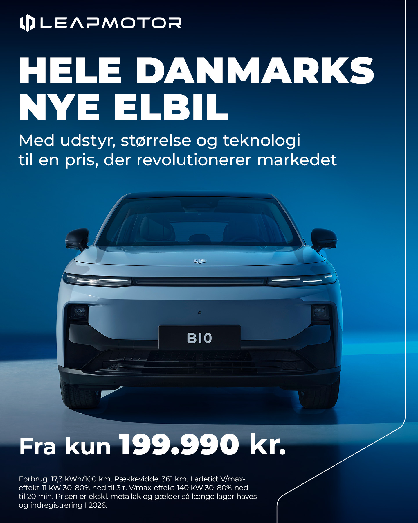 Leapmotor B10 – en elbil i C-SUV-klassen med generøs plads og masser af udstyr, men uden det prisskilt, der normalt følger med biler i denne klasse. Med en startpris på 199.990 kr. flytter B10 grænsen for, hvad elbilskøbere kan forvente af en bil til under 200.000 kr.