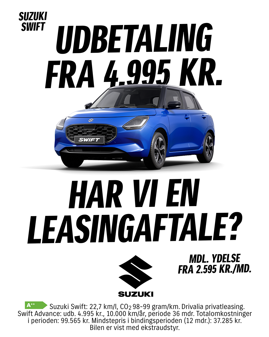 Lige nu har vi en uhørt lav pris på Swift privatleasing!